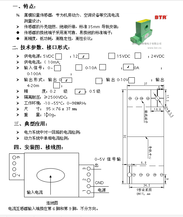 - IJ18 BTR01033 單相交流電流傳感器