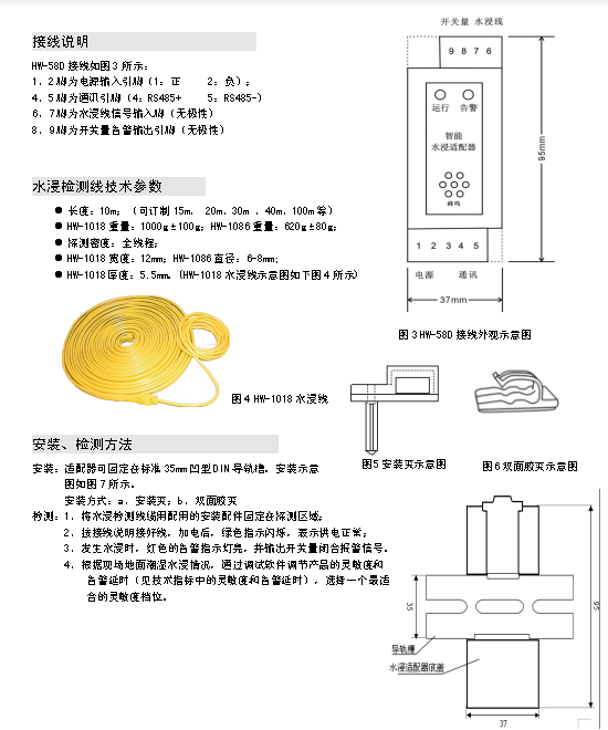 HW-58D智能水浸適配器是一種檢測機房基站、倉庫等重要場所水浸的智能型適配器,